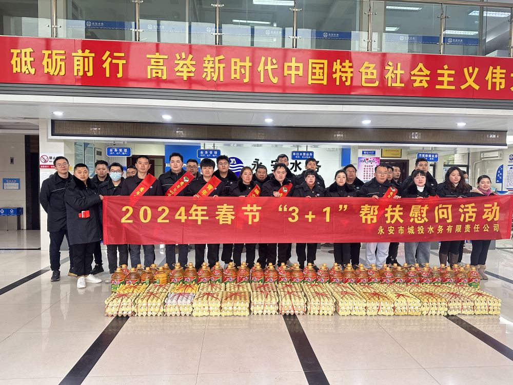 年终岁末,春节将至。1月23日,水务公司开展2024年春节“3+1”帮扶慰问活动,走访慰问28户孤寡老人、残疾人家庭等困难家庭,并送上慰问品以及节日的祝福。